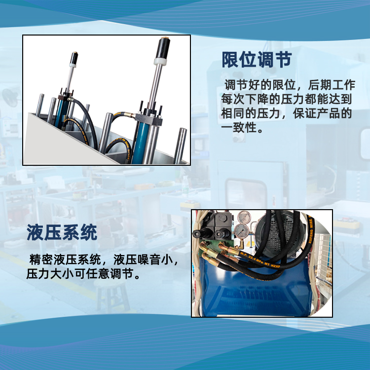5、油壓配有止轉(zhuǎn)雙導(dǎo)桿,使工作更精確;另外油壓出力大小可通過調(diào)壓閥調(diào)整