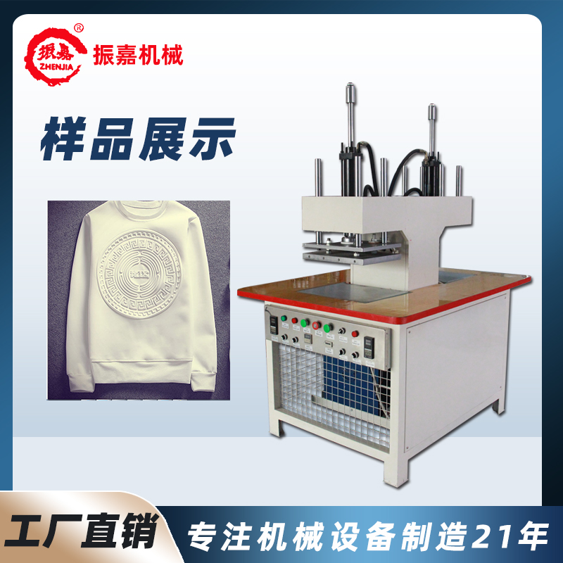 服裝凹凸壓花壓印機適用各種人造皮革和牛仔的凹凸壓花成型適用于T恤的矽膠壓花,毛衣的矽膠壓花,壓痕各種真皮,商標(biāo)皮的烙印,生產(chǎn)各種液體硅膠的立體商,服裝凹凸壓花機主要用于服裝壓花、牛仔凹凸壓花、鞋材壓花、商標(biāo)、皮包、運動鞋、工藝禮品、箱包、牛仔服飾