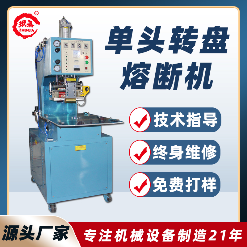 1. 單頭同步熔斷機,是兩個工作位,操作員只需放入產品,推動轉盤觸發(fā)微動開關,模具就自動下降,加熱上升,全部過程簡單安全,工作人員無需特別培訓,就可使用本機。