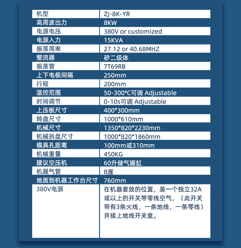 PET吸塑包裝機此機裝有進口雙管防火花保護裝置,對高周波模具及生產產品起到很大的保護作用,可以把模具打火機率降低95%,是一款轉盤式高周波機,可以單人操作,節(jié)約人工