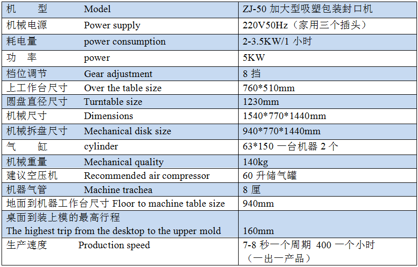 2. 吸塑封口包裝機采用的是雙氣缸型的,壓力比較大,壓出的產(chǎn)品更漂亮,可使用不同形狀的