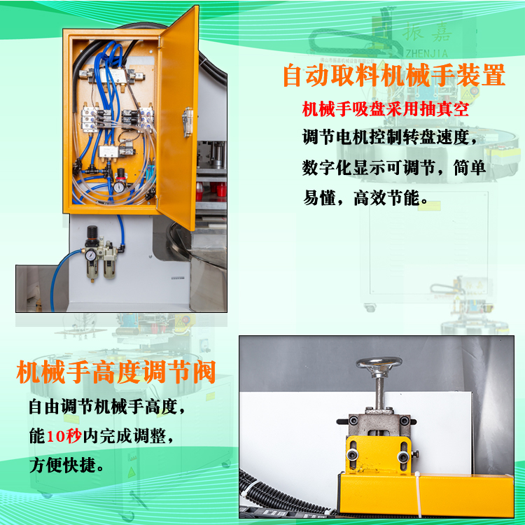 全機(jī)均為PLC觸摸屏控制,全自動(dòng)化帶有抽真空機(jī)械手取料(避免手工取料時(shí)熔接邊變形),操作簡(jiǎn)單,大大減低操作勞動(dòng)強(qiáng)度和節(jié)省工人,提高效率的同時(shí)提升產(chǎn)品檔次