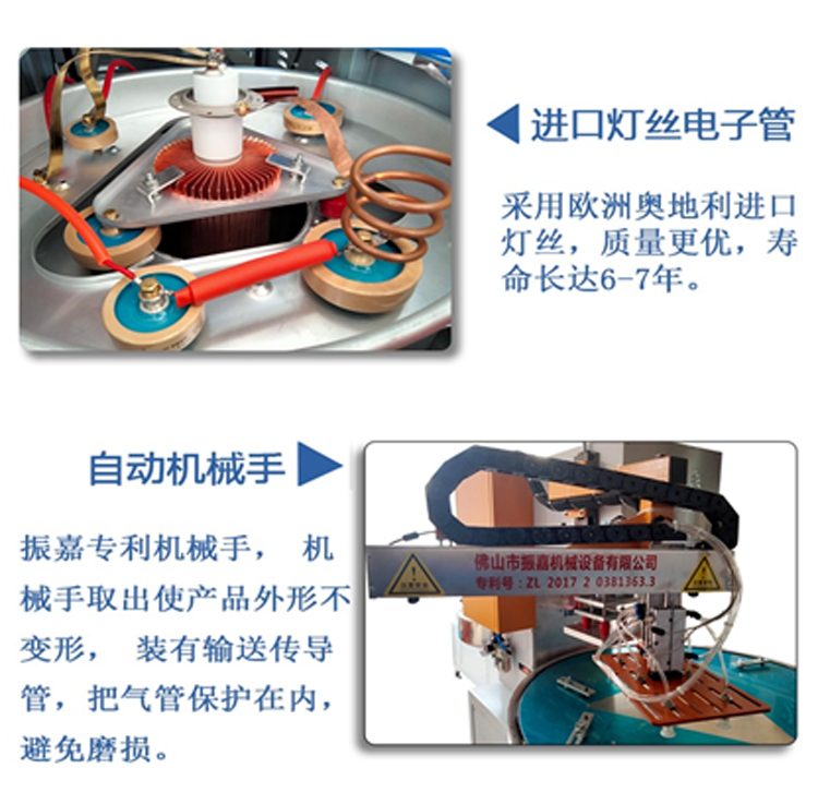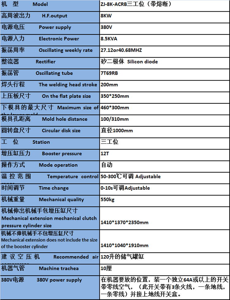 3.全自動帶熔斷吸塑包裝機采用高Q值電子振蕩管,國際工業(yè)標準27.12MHz的高周波頻率波段,出力大更穩(wěn)定,輸出率特強,能大大降低高周波的熔接時間,提高產(chǎn)品質(zhì)量及產(chǎn)量。
