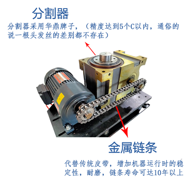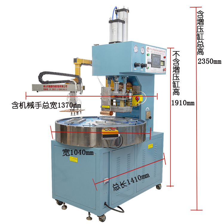 1.全自動帶熔斷吸塑包裝機結(jié)構(gòu)設(shè)計為圓盤式結(jié)構(gòu),可以只需一個一操作,當一個工位人工取下產(chǎn)品并放置原料時,另一個工位剛好焊接完成,如此旋轉(zhuǎn)進出一個循環(huán)操作,只需放料,取料由機械手完成,使人工與機器做到合理運用,要省人力。