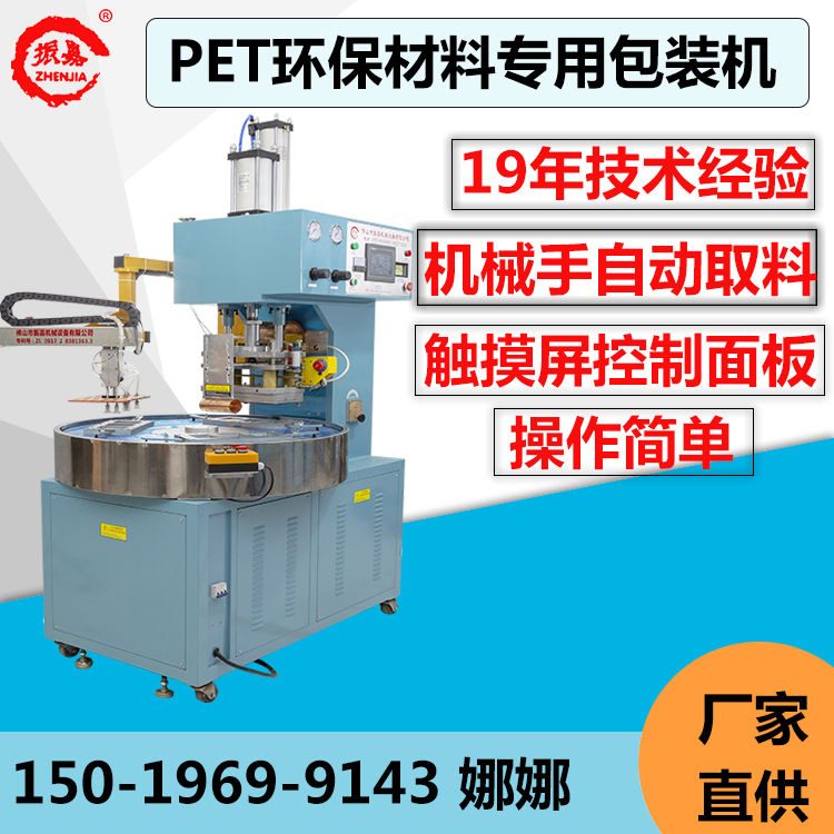 1.pet泡殼包裝機(jī)結(jié)構(gòu)設(shè)計為圓盤式結(jié)構(gòu),可以只需一個一操作,當(dāng)一個工位人工取下產(chǎn)品并放置原料時,另一個工位剛好焊接完成,如此旋轉(zhuǎn)進(jìn)出一個循環(huán)操作,只需放料,取料由機(jī)械手完成,使人工與機(jī)器做到合理運(yùn)用,要省人力。